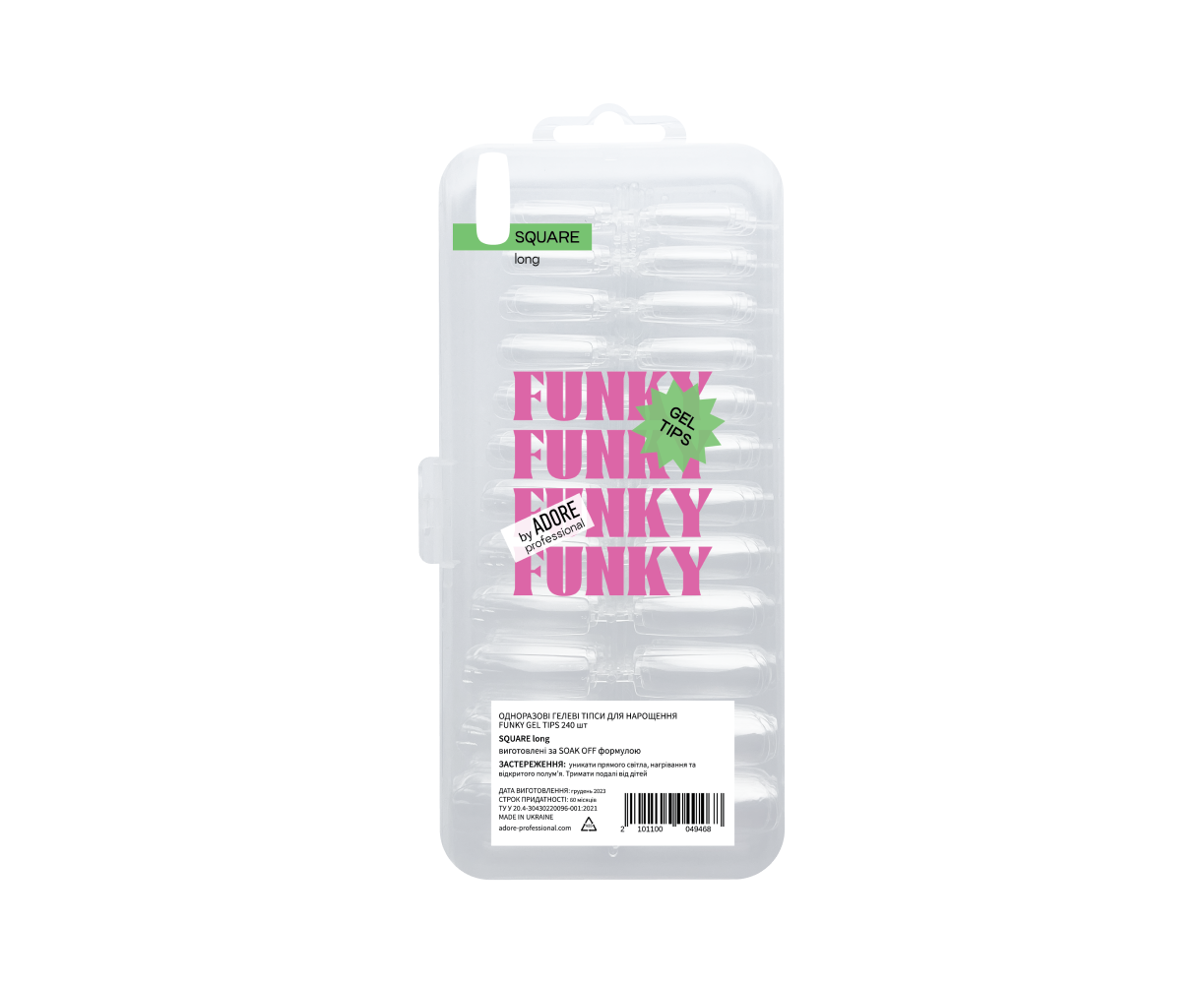 ADORE. Funky Gel Tips, Square Long, 240 pcs. Гелеві тіпси, подовжений квадрат