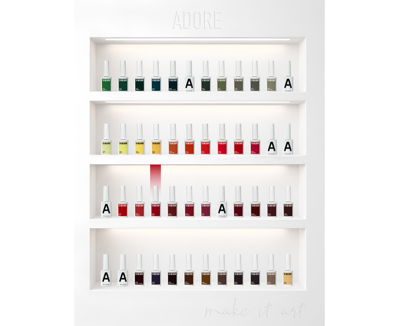 Дизайн оновленого флакона ADORE виконаний нью-йоркською агенцією як ідеальний інструмент для творчості нейл-майстра. Вивірені пропорції, чіткий хват, стабільна посадка в руці забезпечують точну та впевнену роботу щодня.