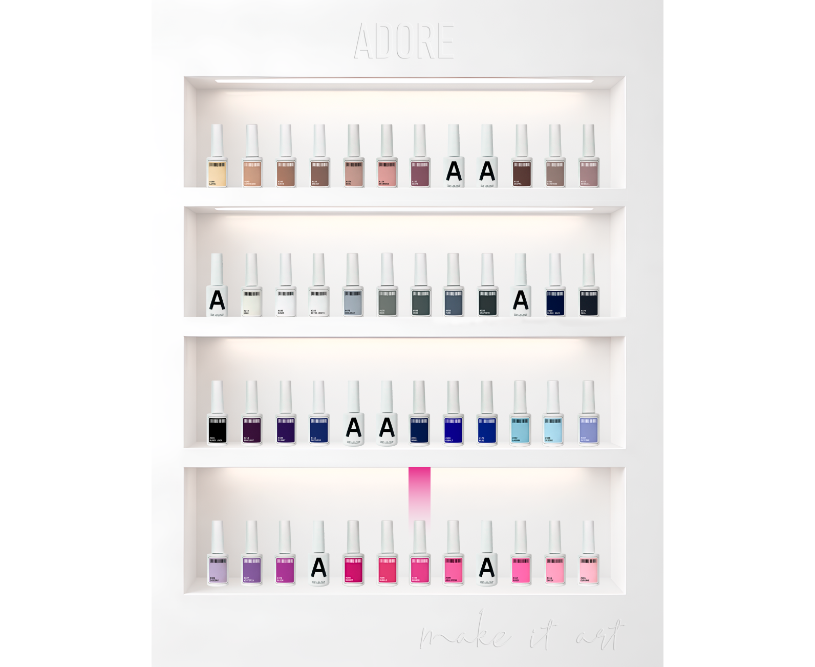 Дизайн оновленого флакона ADORE виконаний нью-йоркською агенцією як ідеальний інструмент для творчості нейл-майстра. Вивірені пропорції, чіткий хват, стабільна посадка в руці забезпечують точну та впевнену роботу щодня.