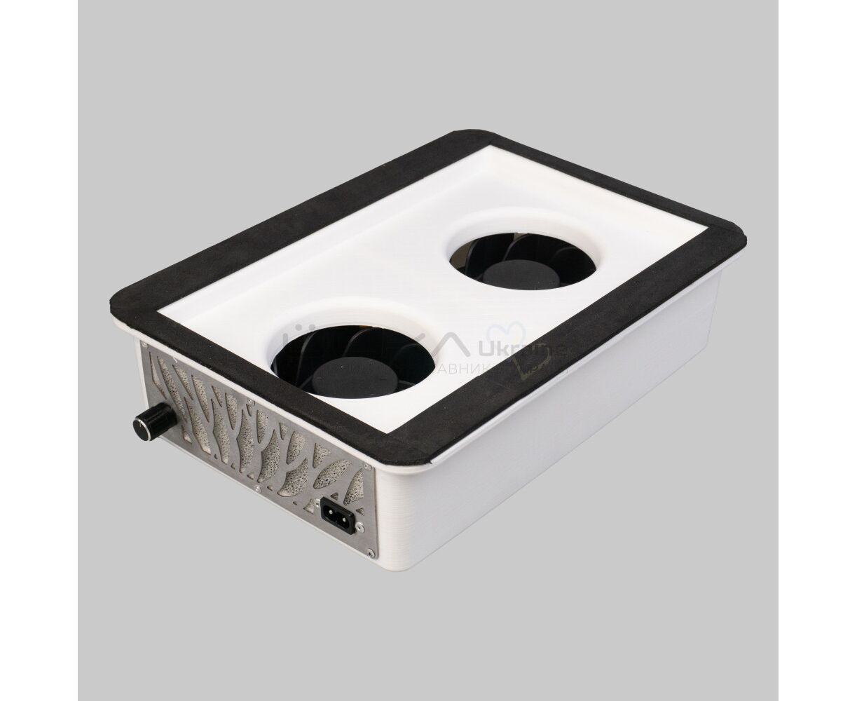 Забудьте про пил на робочому місці! Витяжка ÜLKA Tornado з двома вентиляторами забезпечує рівномірне всмоктування по всій площині. Потужність у 60 Вт та швидкість всмоктування 3.2 м/с дозволяють швидко очистити повітря, створюючи комфортні умови для майстра та клієнта.