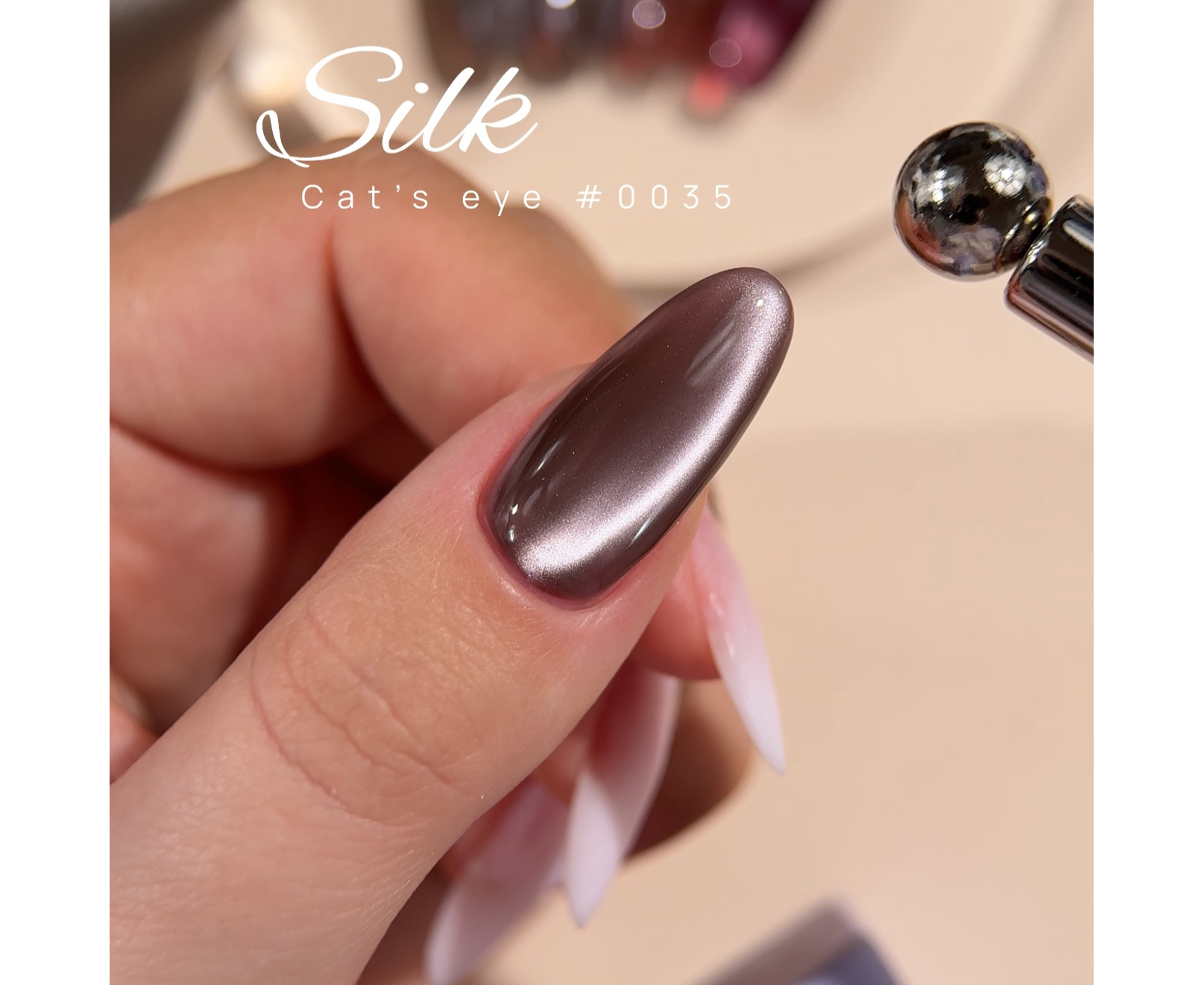 Кожен відтінок Cat Eye Silk - чутливий до магніту і водночас добре тримає створений ефект, що дозволяє створювати різні сучасні візерунки до процесу полімеризації.