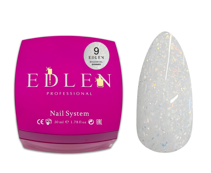 Builder gel Shimmer від EDLEN — це універсальний низькотемпературний трьохфазний гель для нарощування.