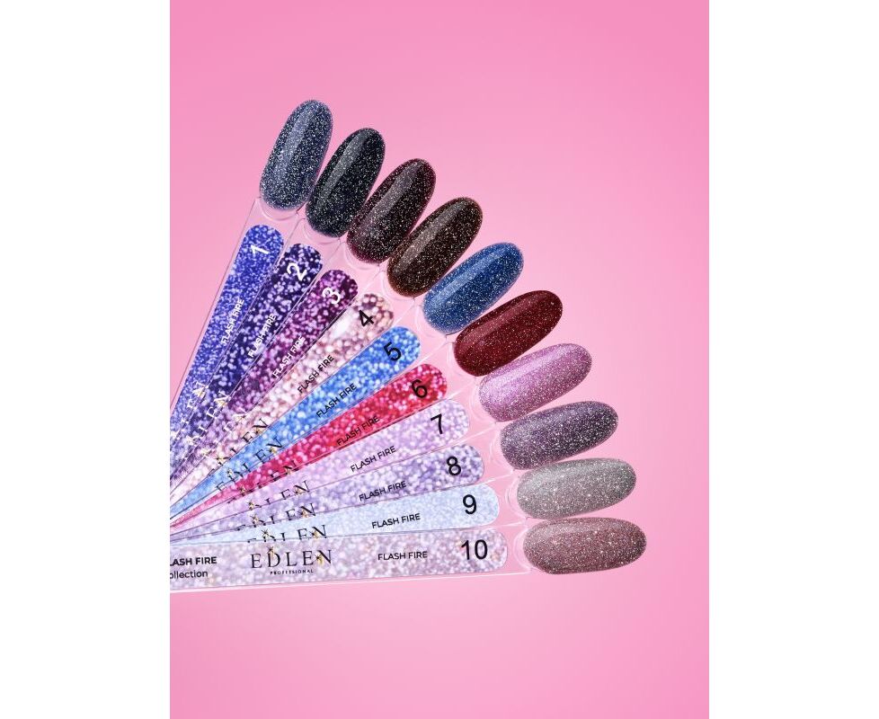 Flash Fire від EDLEN — колекція сяючих світловідбиваючих гель-лаків до складу яких входять опалові блискітки та світловідбиваючий пісок. Просто додайте спалаху на нігті і вони одразу ж яскраво заблистять!