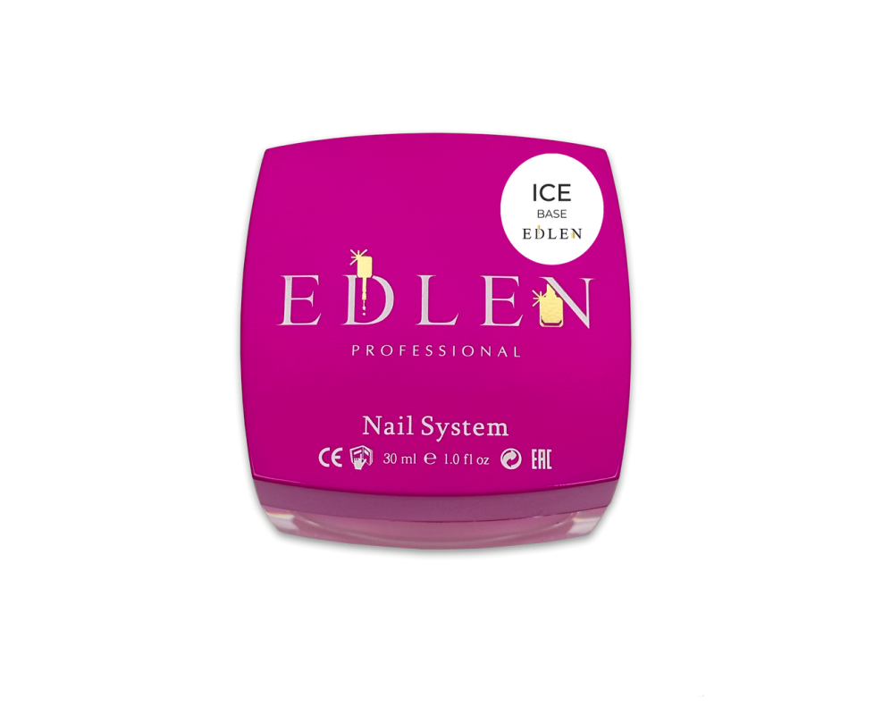 Ice base від EDLEN має рідку консистенцію, що дозволяє створювати тоненьке покриття. Також безкислотна база м’яка та еластична, тому вона чудово підійде для педикюру, а також як вирівнюючий або тонкий шар під камуфлюючі матеріали. Потребує додаткової механічної підготовки нігтьової пластини для хорошого з’єднання із натуральним нігтем.