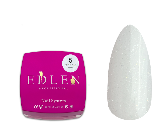 Poly gel від EDLEN — багатофункційний твердий пастоподібний гель преміум якості, що застосовується для виправлення деформацій і скрученості нігтьової пластини, для ремонту тріщин нігтя, нарощування, донарощування, укріплення, а також для корекції нарощених нігтів. Має дрібнозернисту структуру, а отже — високу твердість, тому буде триматись навіть на гострому квадраті чи екстримальній довжині.