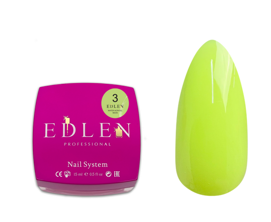 Water Acrygel Neon (limited collection) - лімітована, дуже “summer” колекція рідких, неонових акригелів Edlen. Неонові рідкі акригелі забезпечують швидку роботу із укріпленням та моделюванням нігтьової пластини за кілька рухів пензля і також доступні у різних об'ємах. Колекція включає у себе усі неонові відтінки, які безперечно так і хочеться нанести на нігті у такі сонячні, літні дні!