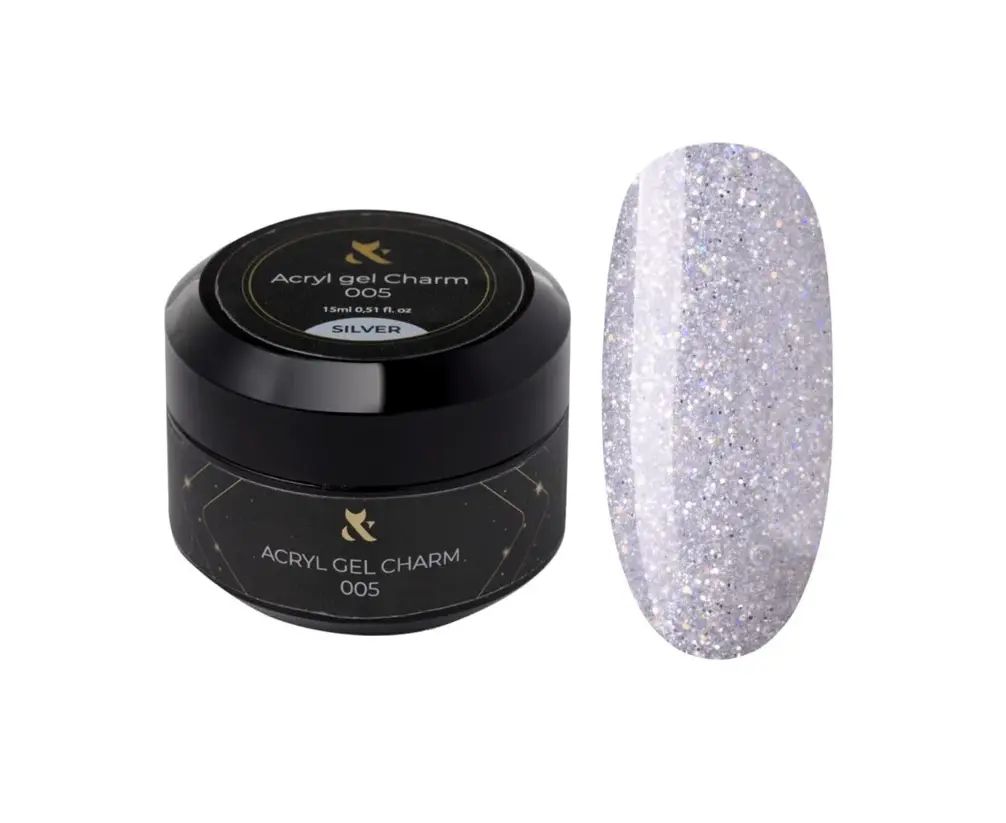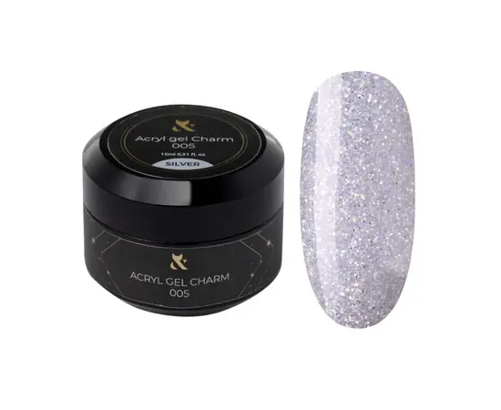 F.O.X. Acryl gel, Charm #005, Silver, 15 ml. Світловідбиваючий густий акригель з шимером