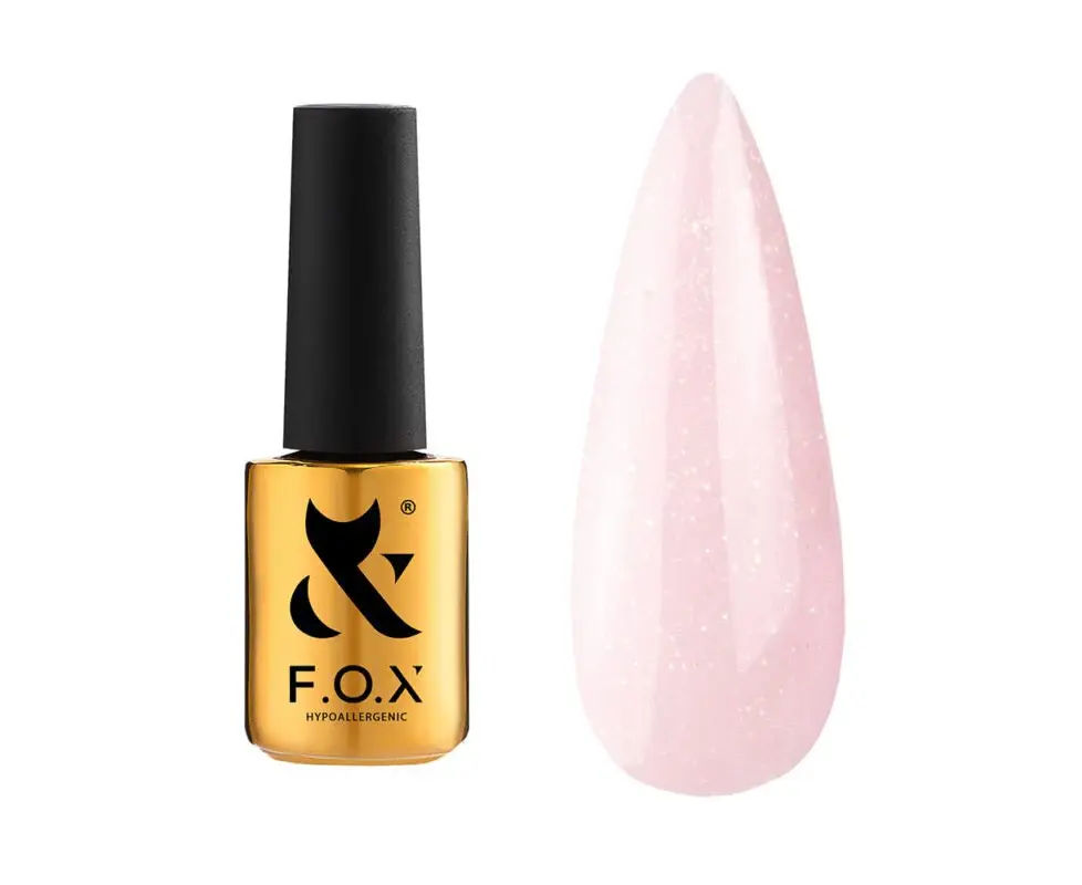 4. Нанести F.O.X Cover Base Shimmer 001 в один-два шари в техніці віривнювання та зміцнення нігтів, полімеризувати в UV-лампі 36W — 2 хв., LED/UV-лампі 36/48W — 60 сек.