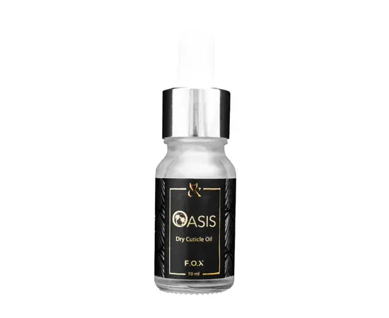 F.O.X Dry Cuticle Oil OASIS – це сухе масло зі зручним дозатором для догляду за кутикулою. Воно містить мерехтливі часточки, водночас не залишає жирних слідів та блиску на шкірі. Має зволожувальні та живильні властивості. До складу продукту входить олія виноградних кісточок, яка надає шкірному покриву еластичність та пружність.