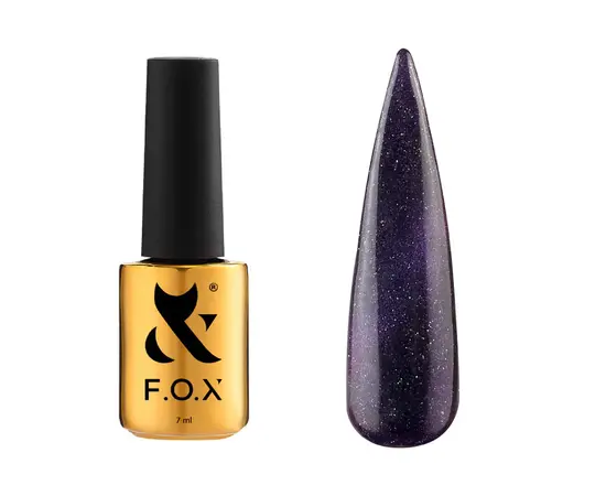 FOX Cat Eye Galaxy - гель-лак з ефектом котячого ока, з насиченим відтінком та дрібним металізованим шимером у складі, створює неймовірно глибокий ефект. Гель-лаки створюють світловідбиваючі частинки, які створюють ефект Flash, надаючи нігтям унікального блискучого вигляду під впливом світла.