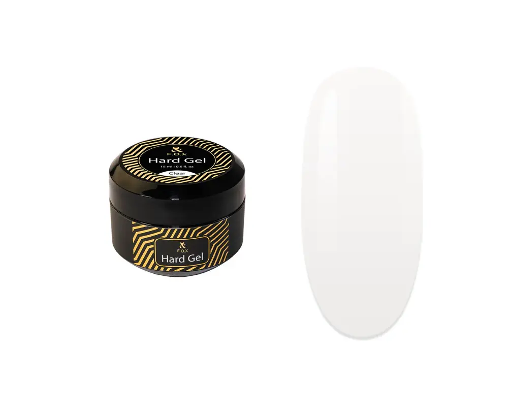 F.O.X Hard Gel Clear – прозорий самовирівнюючий гель у рідкій консистенції. Підходить для роботи без обпилювання. Можна використовувати не лише для нарощування, але й для зміцнення нігтів. Він має чудове зчеплення з натуральним нігтем, ідеально тримає арку та відрізняється високою міцністю.