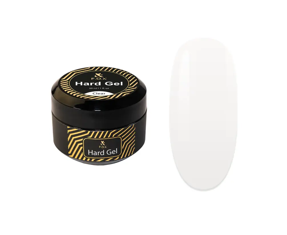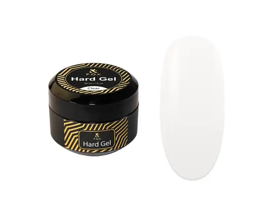 F.O.X Hard Gel Clear – прозорий самовирівнюючий гель у рідкій консистенції. Підходить для роботи без обпилювання. Можна використовувати не лише для нарощування, але й для зміцнення нігтів. Він має чудове зчеплення з натуральним нігтем, ідеально тримає арку та відрізняється високою міцністю.
