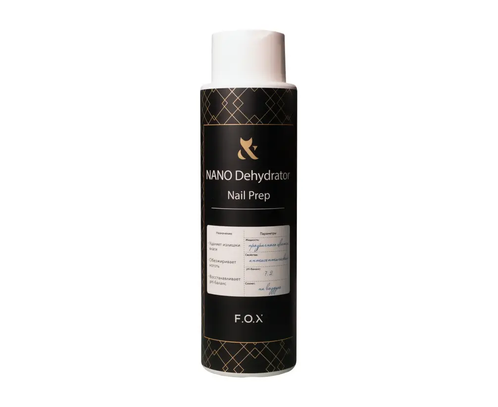 F.O.X Nano Dehydrator Nail Prep – це рідина, що застосовується для підготовки натурального нігтя до нанесення штучного покриття.
