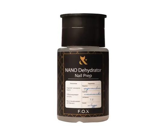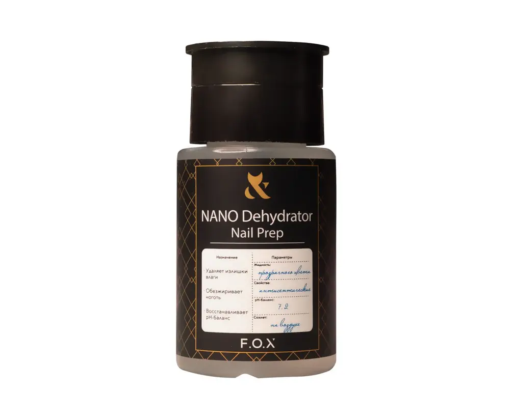F.O.X Nano Dehydrator Nail Prep – це рідина, що застосовується для підготовки натурального нігтя до нанесення штучного покриття.