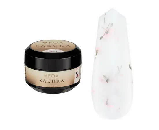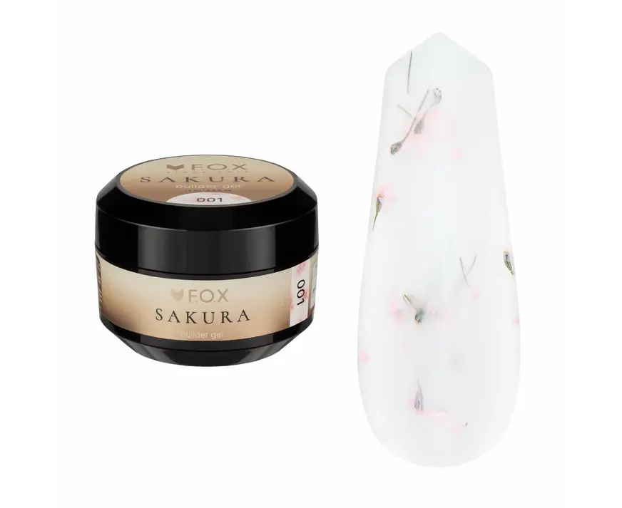F.O.X. Sakura Builder Gel #001,15 ml. Трьохфазний гель для моделювання нігтів, з сухоцвітами