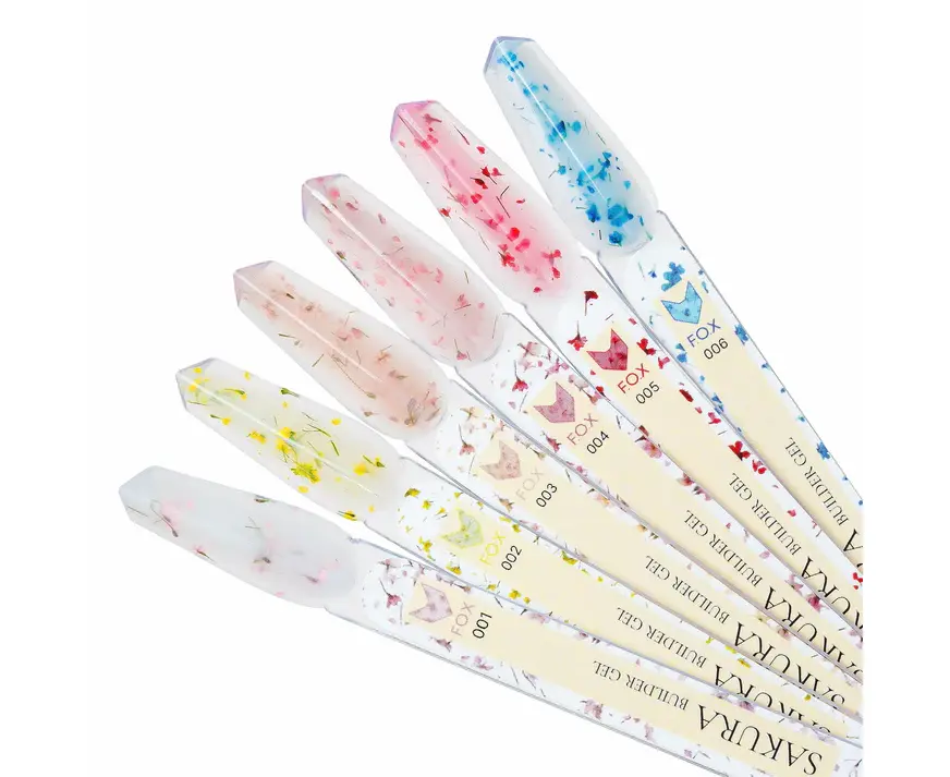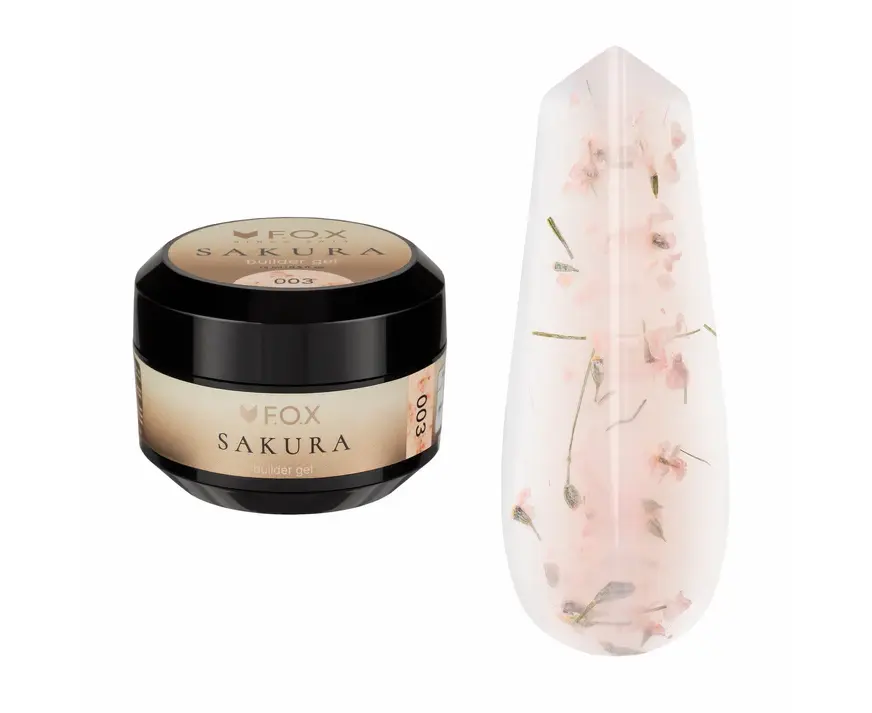 F.O.X. Sakura Builder Gel #003,15 ml. Трьохфазний гель для моделювання нігтів, з сухоцвітами