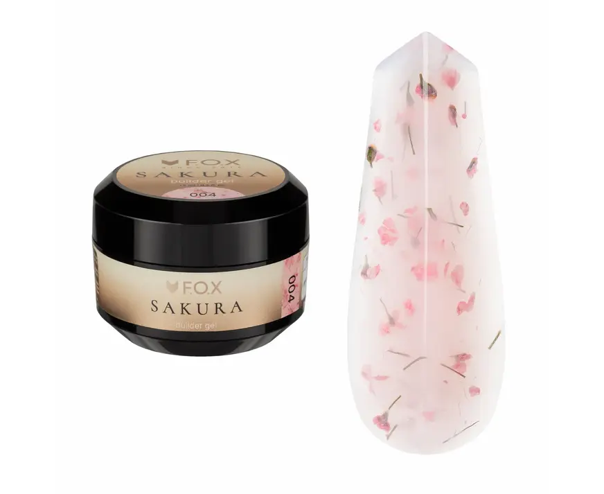 F.O.X. Sakura Builder Gel #004,15 ml. Трьохфазний гель для моделювання нігтів, з сухоцвітами