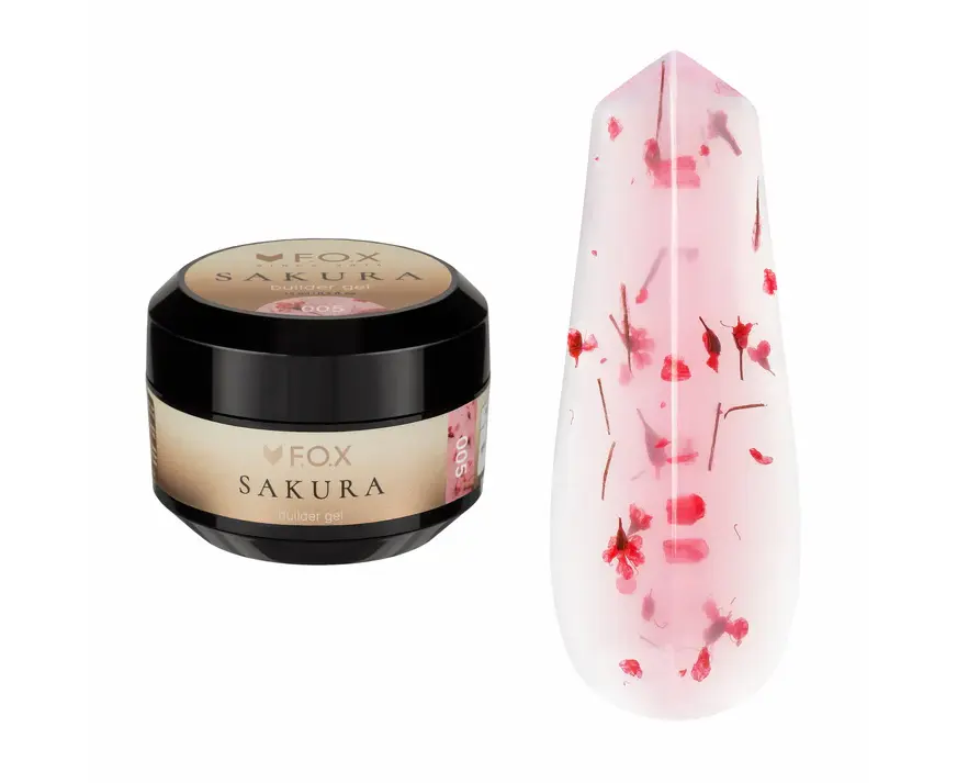F.O.X. Sakura Builder Gel #005,15 ml. Трьохфазний гель для моделювання нігтів, з сухоцвітами