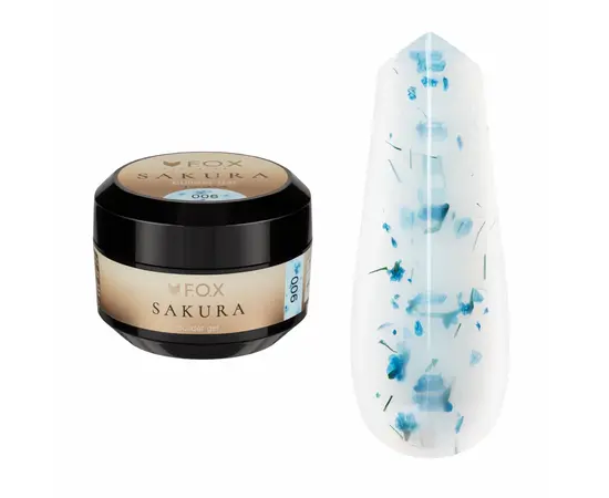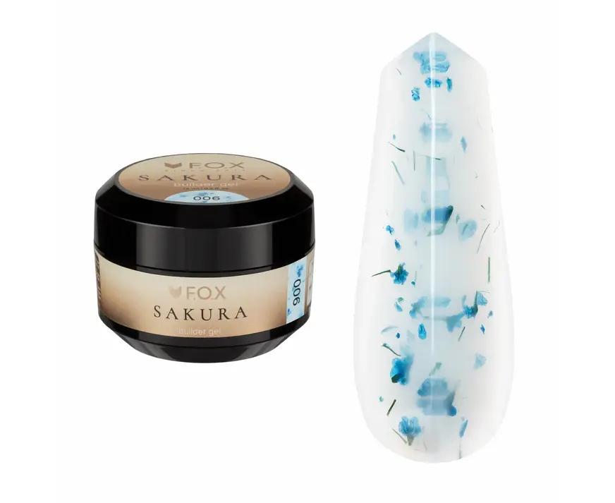 F.O.X. Sakura Builder Gel #006,15 ml. Трьохфазний гель для моделювання нігтів, з сухоцвітами