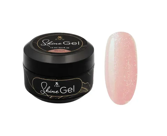 F.O.X Shine GeI Peach — рідкий гель середньої в’язкості для зміцнення нігтів персикового відтінку із делікатним блиском та вишуканим дрібним шиммером. Підходить як для коротких, так і довгих нігтів, чудово вирівнює поверхню, не деформується в носінні.