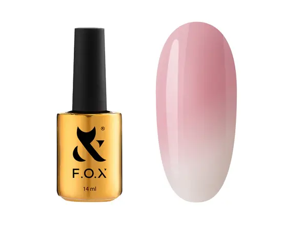 F.O.X Thermo Cappuchino Base - має ніжний ефект переходу кольорів під дією температури. База легко наноситься, швидко самовирівнюється, має насичений пігмент, що легко перекриває нігтьову пластину, навіть тонким шаром. В холодному стані має приємний нюдовий камуфлюючий відтінок, при зміні температури на тепло - перетворюється на ніжний кремовий колір.