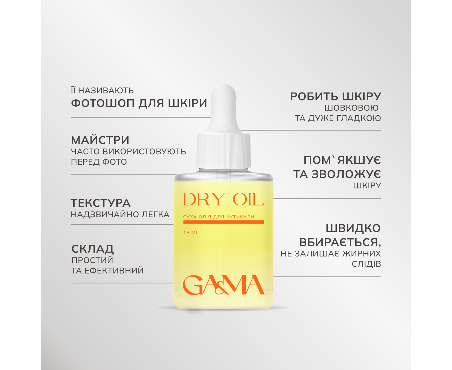 DRY OIL - cуха олійка для кутикули з ефектом шовку з шимером.