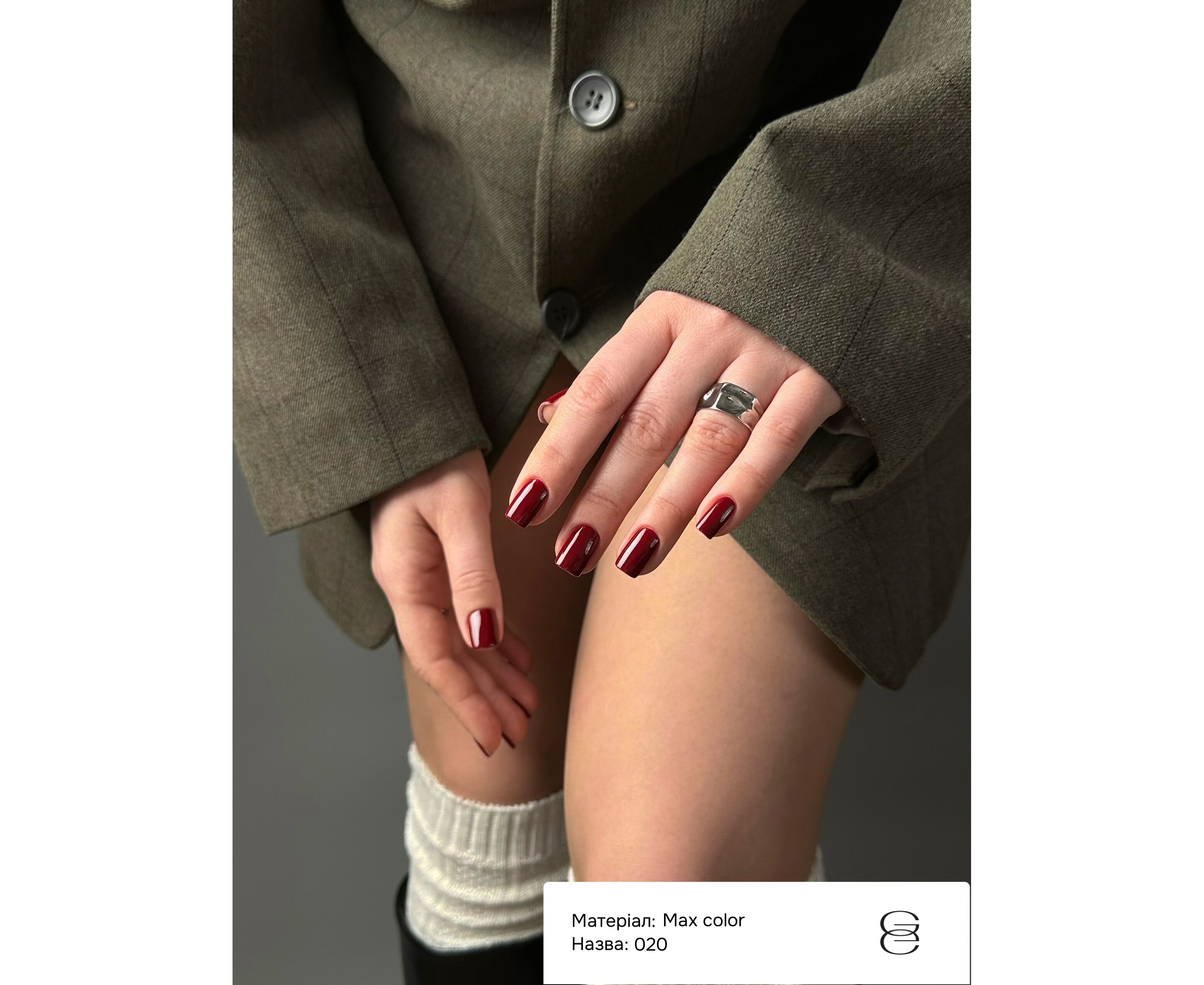 Max Color 20 – темний бордо, з шоколадним відтінком, має теплий підтон. Підійде для тих, кому хочеться глибину й характеру у манікюрі