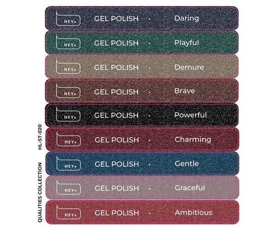 HEYLOVE. Набір наклейок для демонстраційних тіпс. Gel polish, Qualities collection