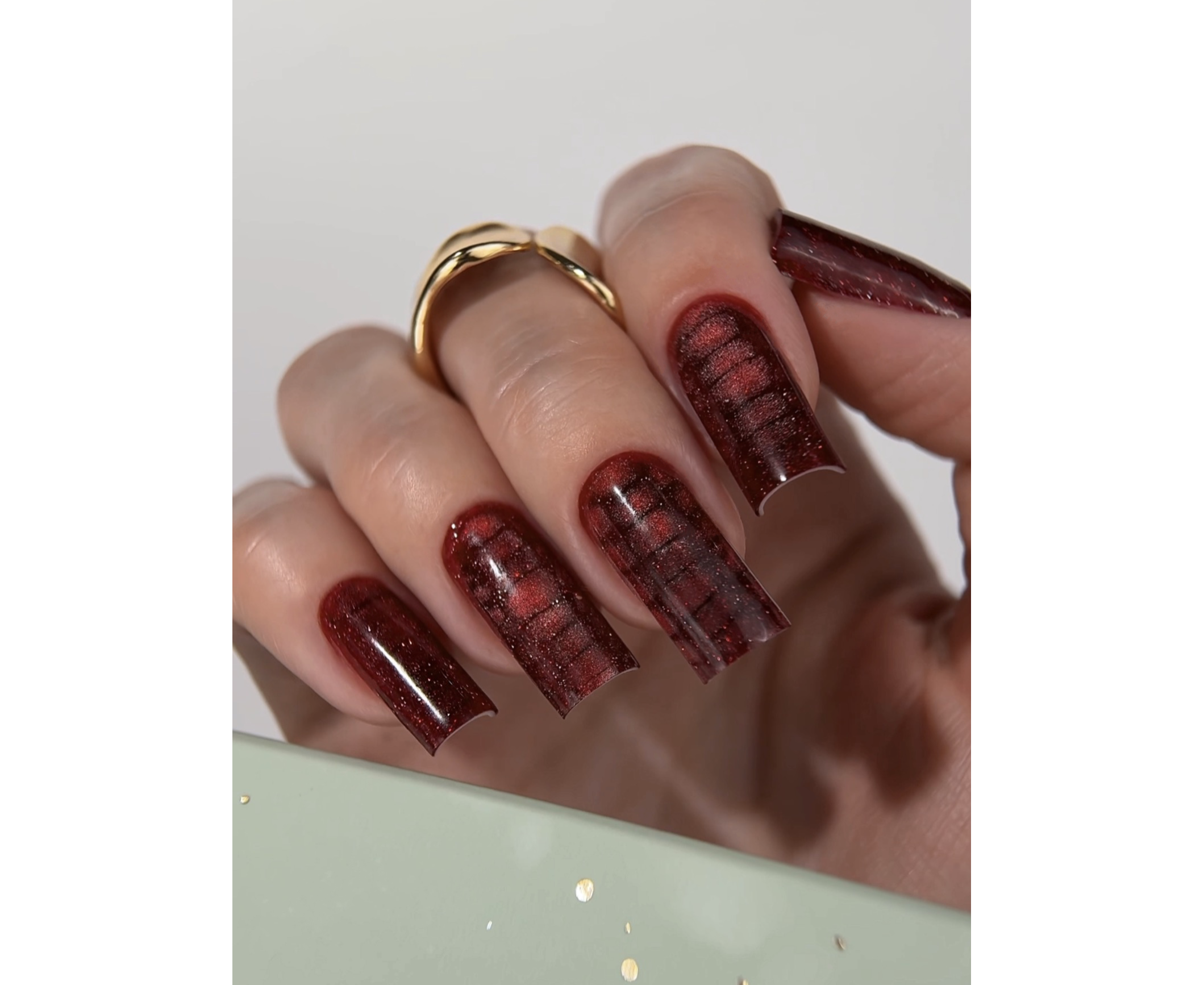 Відтінок: глибокий бордовий зі світловідбиваючими частинками