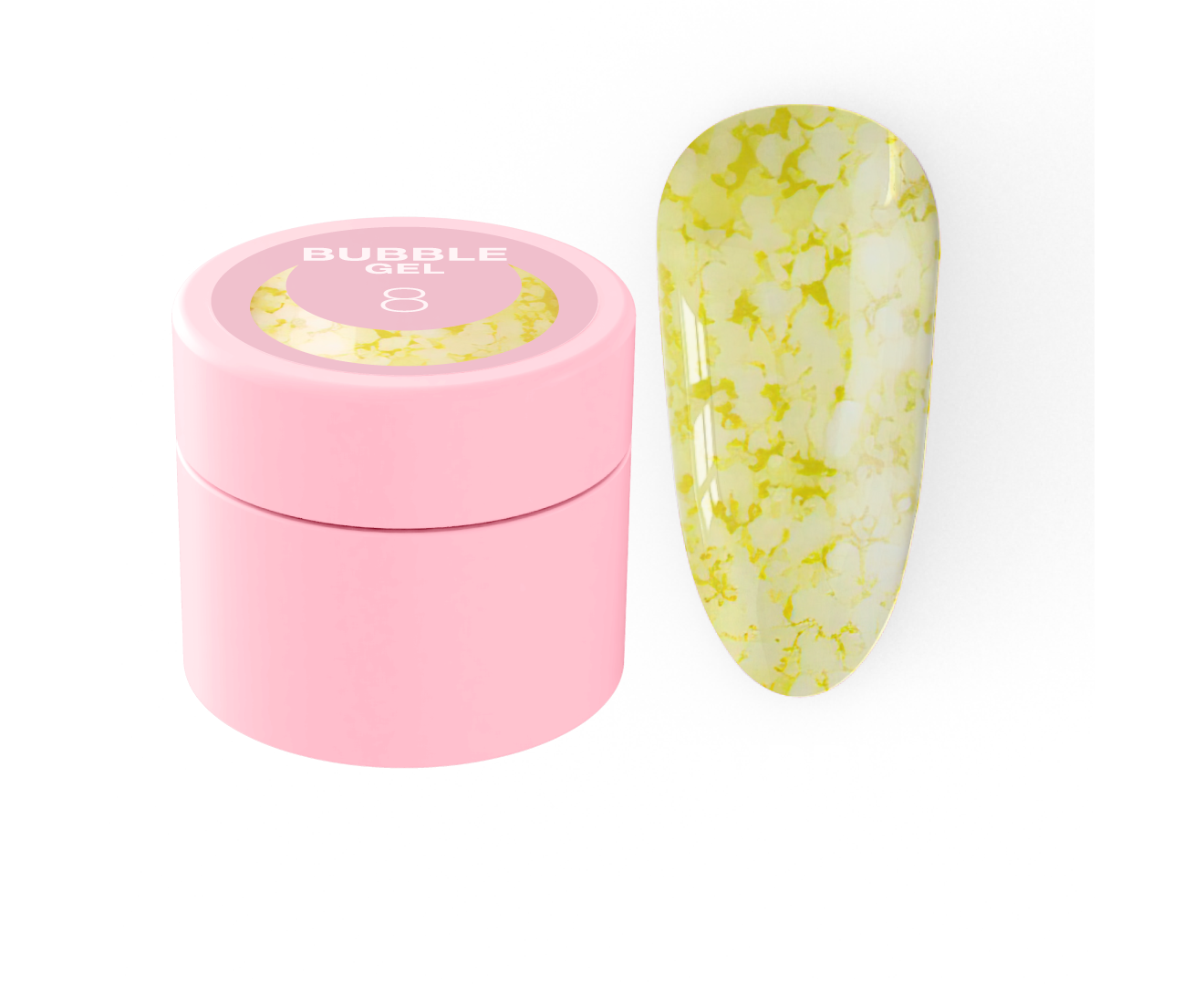 Bubble gel — це густий, середньої в'язкості прозорий гель, насичений різнокольоровим глітером, різним за формою й розміром.