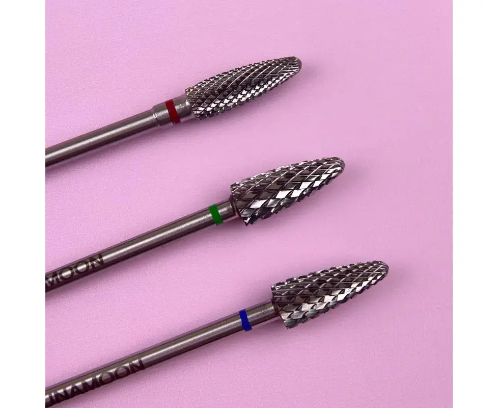 Фреза виконана з високоякісного карбіду вольфраму — міцного та зносостійкого матеріалу, що не перегріває нігтьову пластину під час зняття матеріалу та забезпечує тривалий термін експлуатації.