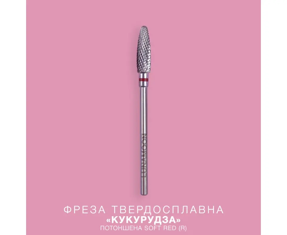 LUNAmoon. Carbide nail bit, corn, Soft Red, 4 mm. Фреза твердосплавна потоншена "Кукурудза", червона
