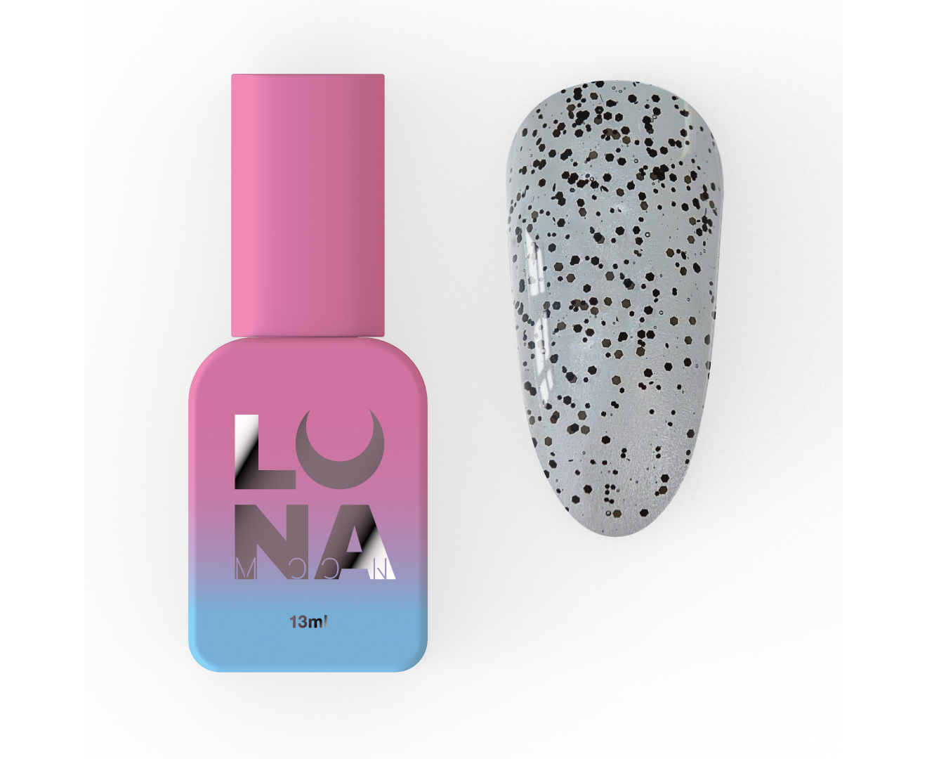 LUNAmoon. Stain Top Coat, 13 ml, топ з чорними часточками
