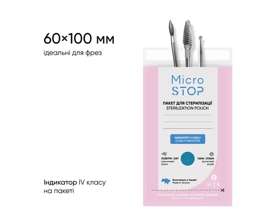 MICROSTOP. Крафт-пакети "WHITE" 60х100 мм, 1000 шт, сухожар / автоклав, білі, з індикатором 4 класу