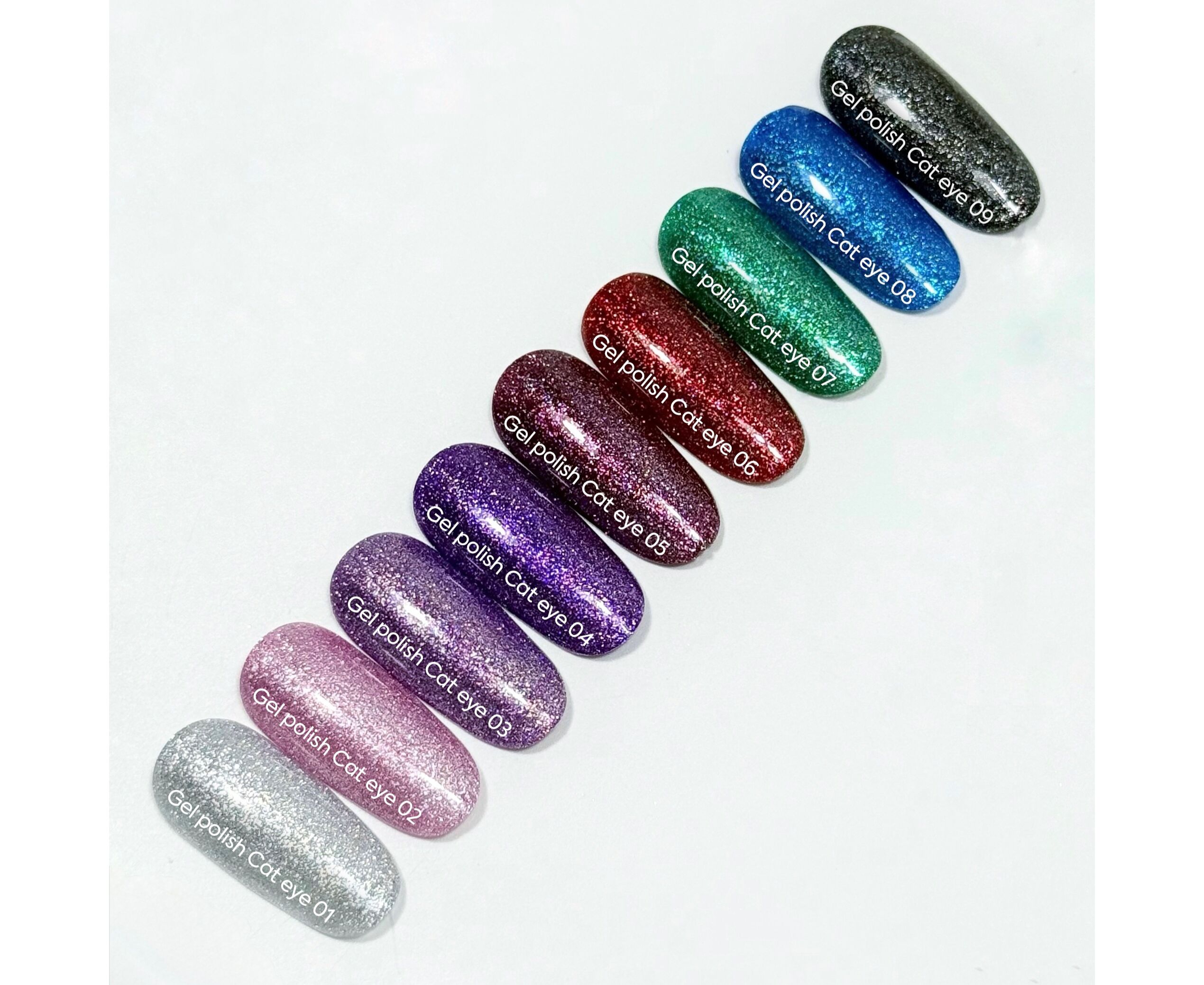 NAILSOFTHEDAY Gel Polish Cat Eye — це дуже стильне поєднання глибокого ефекту котячого ока, насичених пігментів і делікатного світловідбивального блиску. Завдяки дрібній поталі відтінки виглядають особливо виразно та створюють багатовимірне сяйво під будь-яким освітленням. Це ідеальна колекція для тих, хто любить створювати святкові, ефектні та помітні дизайни.