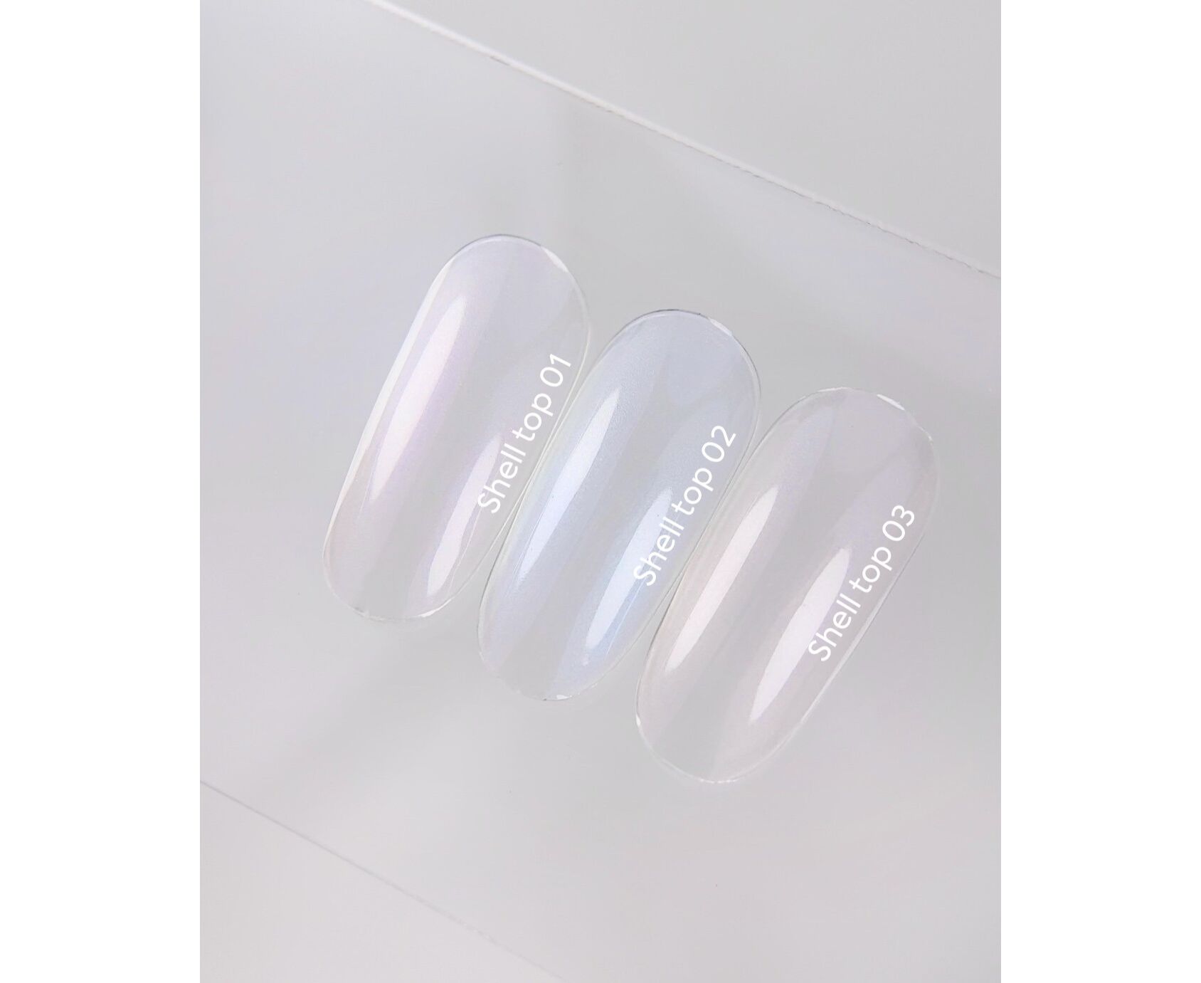 NOTD Shell Top - це топ без липкого шару, що поєднує перлинний ефект та ефект втирки в одному флакончику. Забудьте про триетапне покриття та сколи. Тепер втирка та покриття звичайним топом поєднуються в одному етапі. З ним ваші нігтики будуть завжди в тренді: