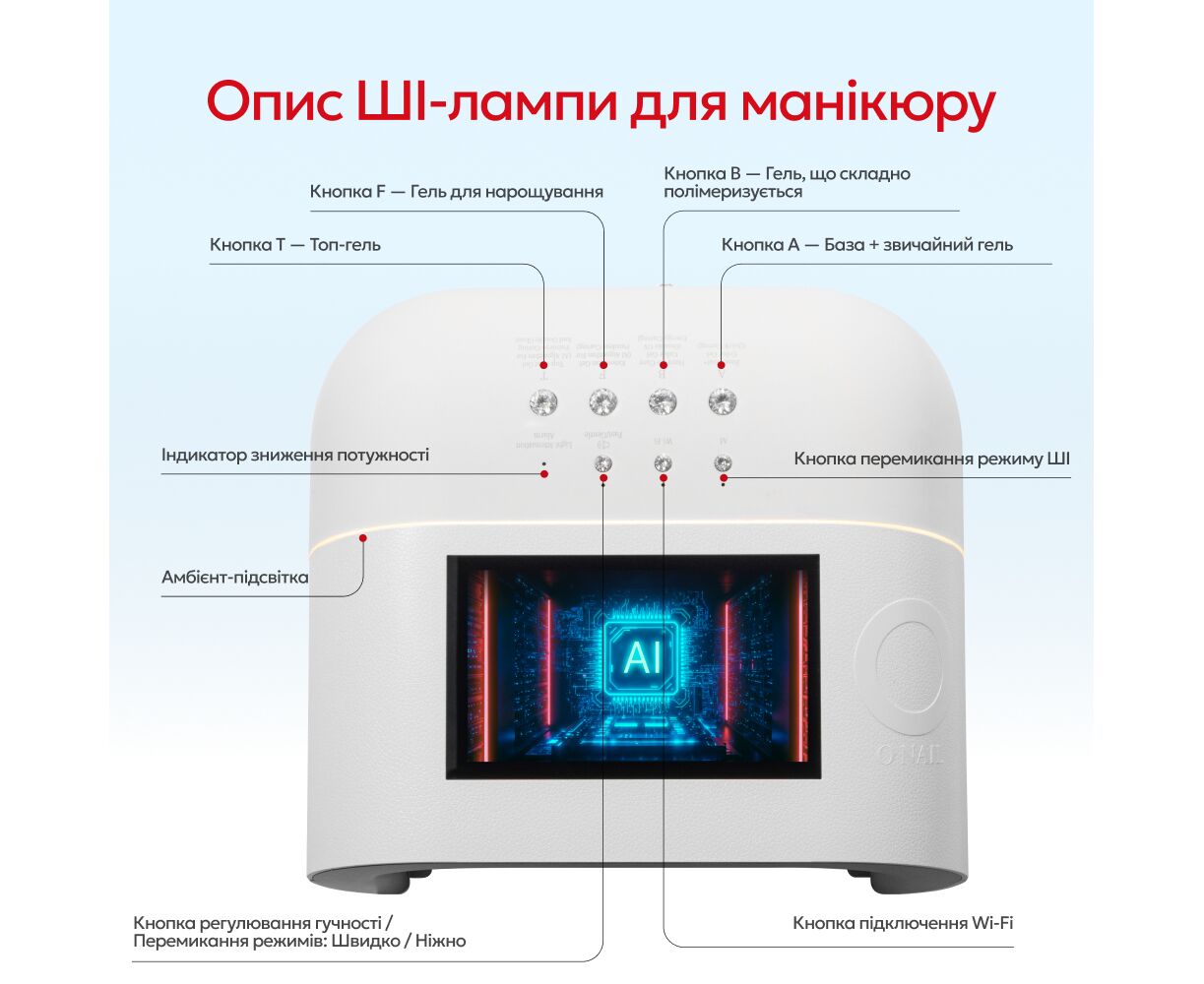 ONAIL. Artificial Intelligence Nail Lamp, White. Лампа зі штучним інтелектом, біла