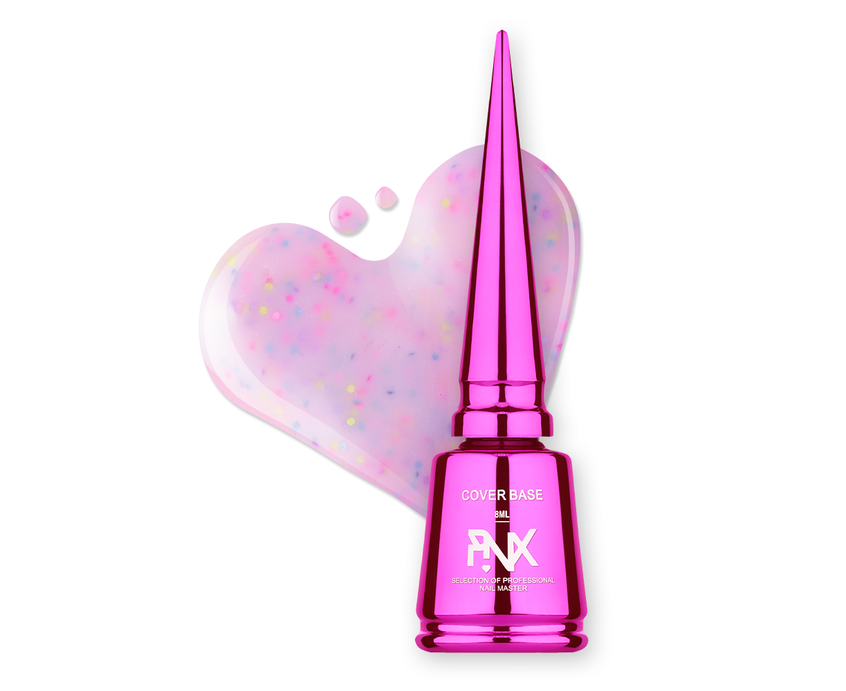 PINX. Cover Base "Candyland", #002, 8 ml. Кольорова база з кольоровими частинками