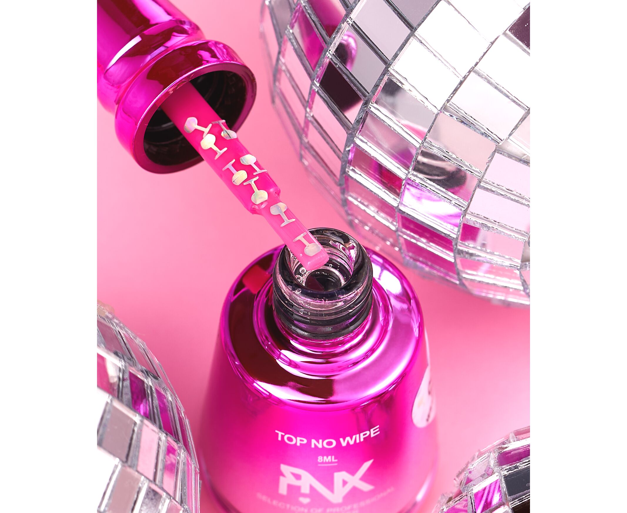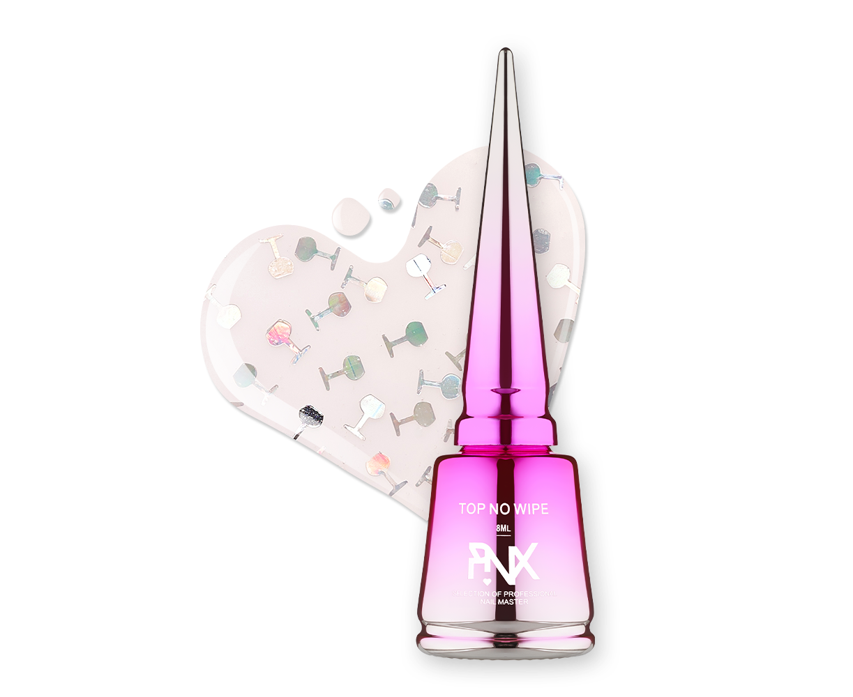 PINX. No Wipe Top, "Winecore", #001, 8 ml. Прозорий топ з голографічними келихами