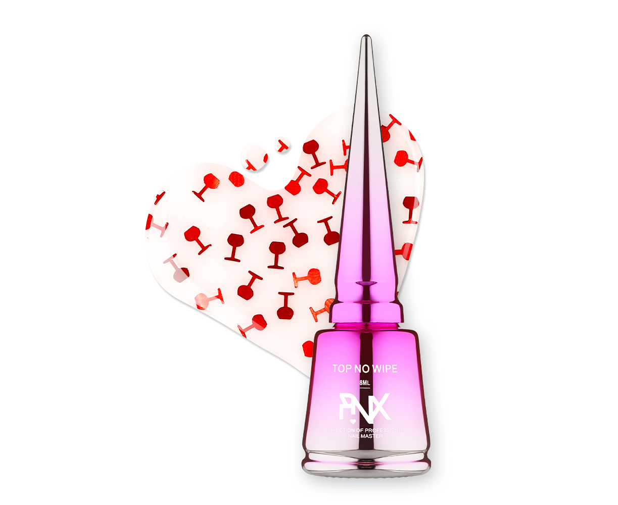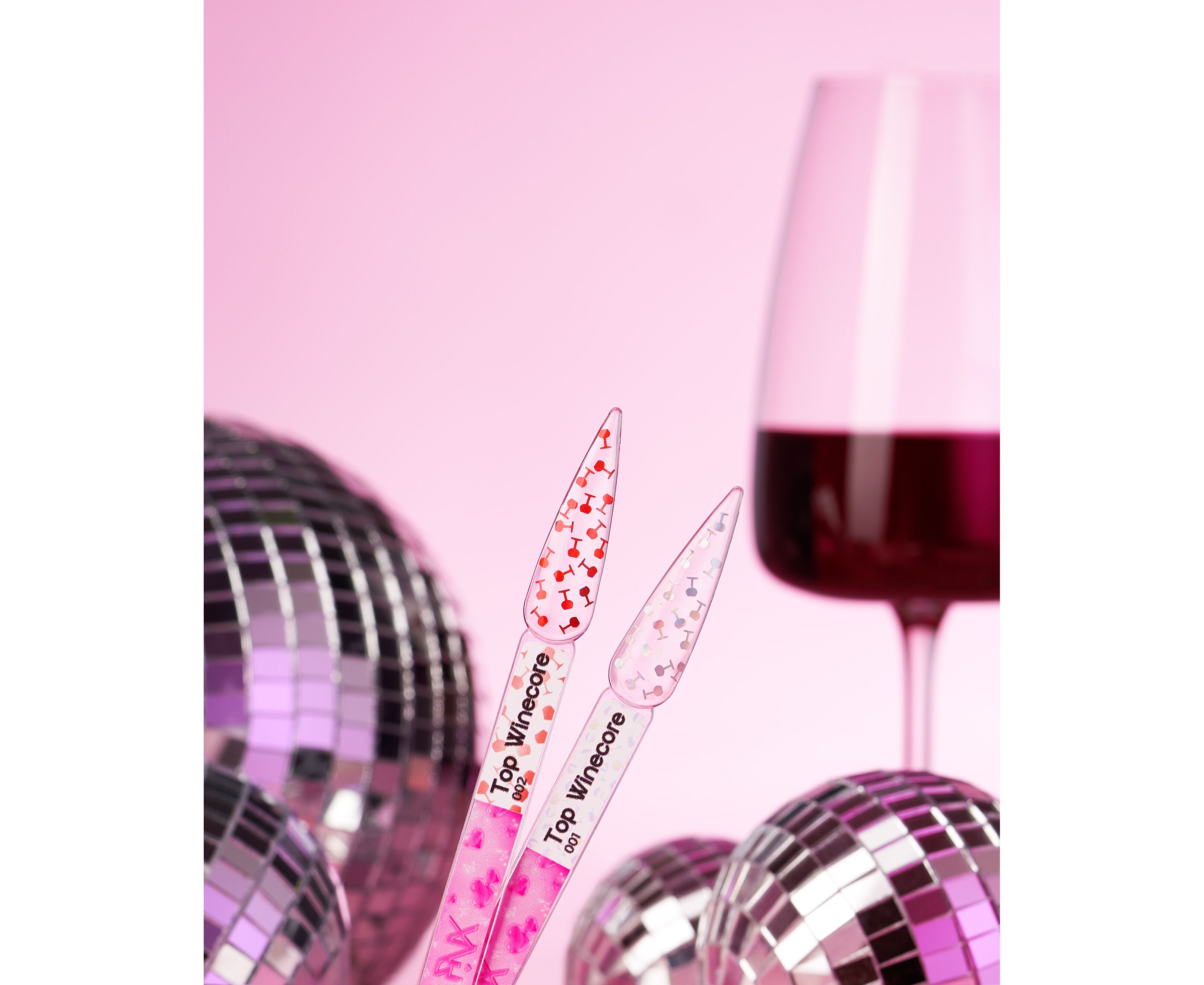 PINX. No Wipe Top, "Winecore", #002, 8 ml. Прозорий топ з червоними келихами