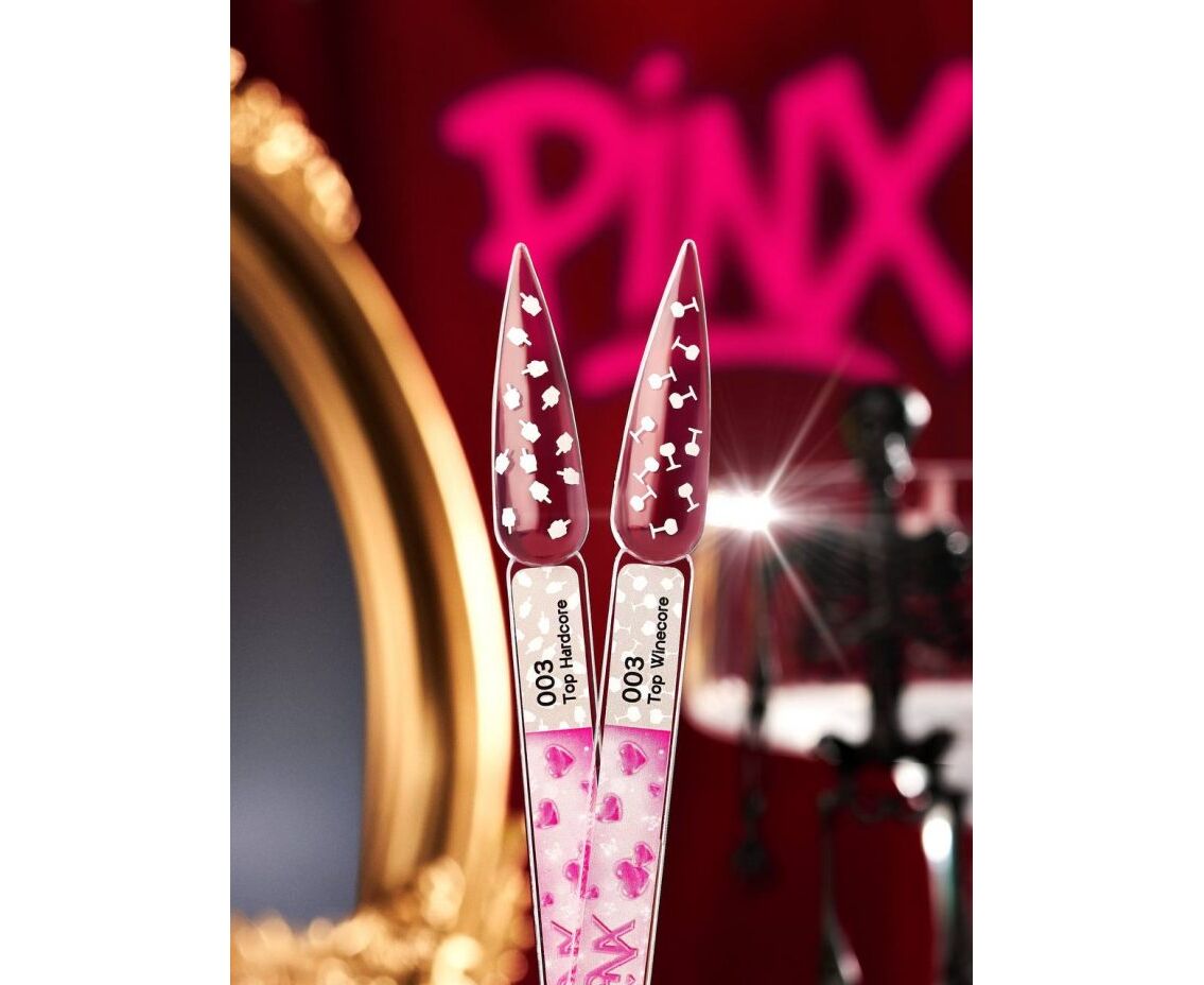 PINX. No Wipe Top, "Winecore", #003, 8 ml. Прозорий топ збілими келихами