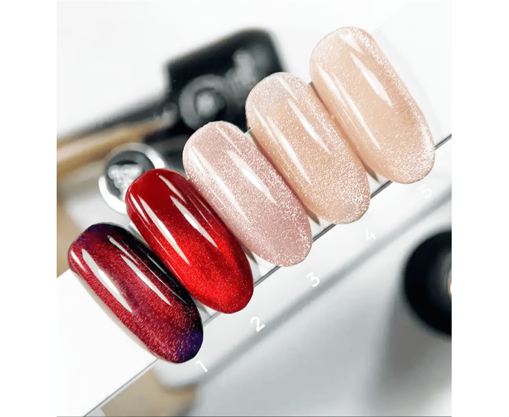 Під дією магніту дрібнодисперсна металева пудра утворює унікальні візерунки — від ніжного відблиску до яскравого кришталевого проміння. Кожен рух руки розкриває нові грані світла, створюючи вишуканий і багатовимірний ефект.