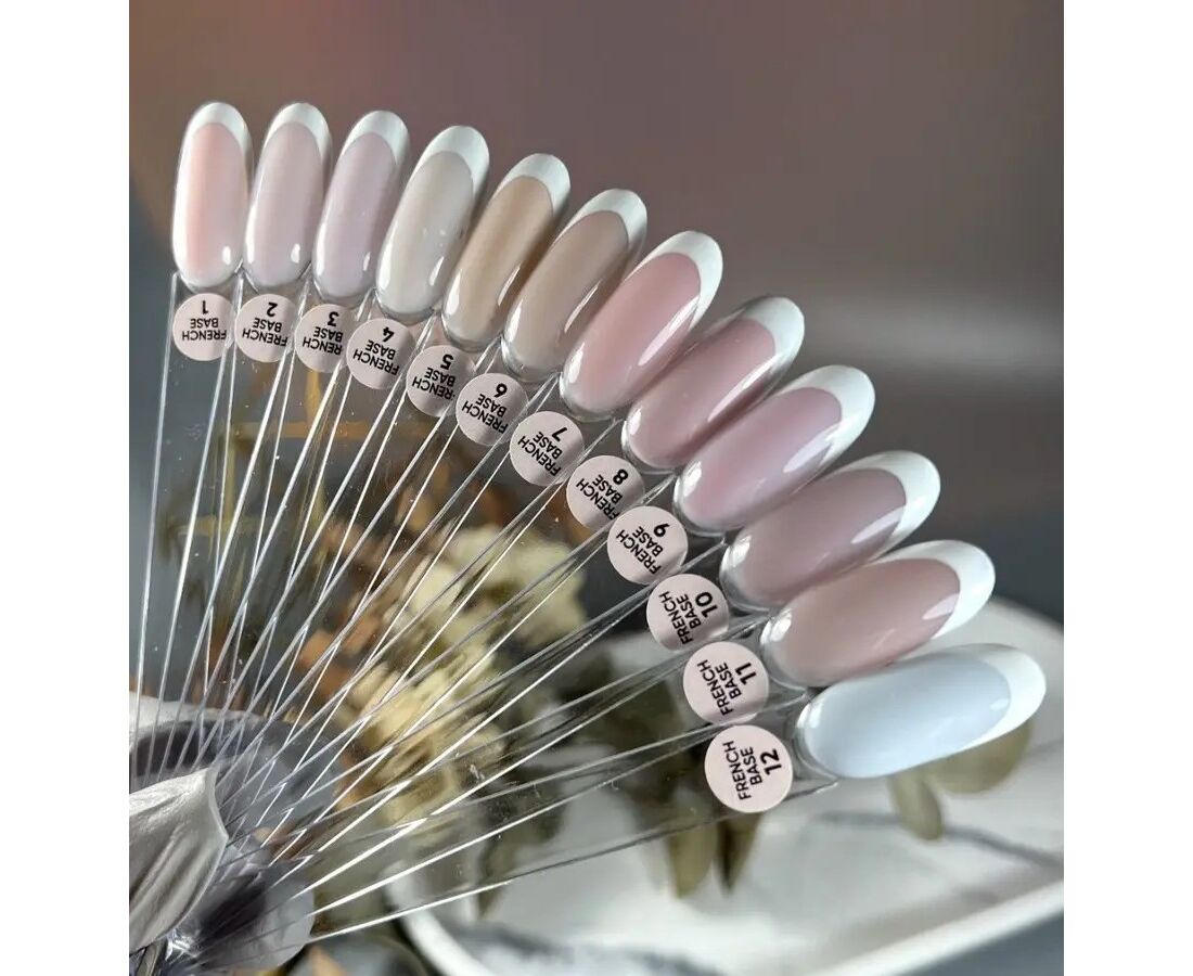 Бази French Base мають середню щільність кольору, тому нігті виглядають максимально природно, набуваючи рівного і красивого тону. Завдяки продуманій консистенції матеріал легко розподіляється і самовирівнюється, що дозволяє створювати ідеальне покриття за лічені секунди.