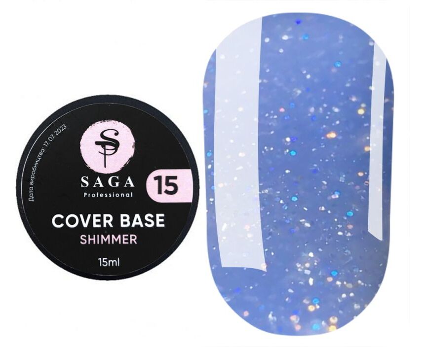 SAGA. Shimmer base, #15, 15 ml. Кольорова база з шимером
