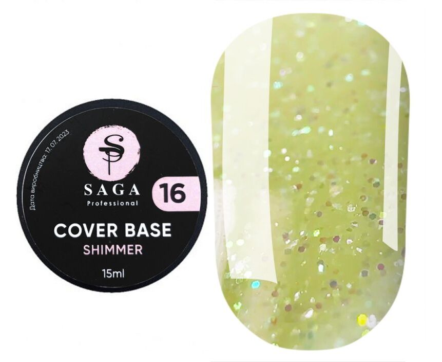 SAGA. Shimmer base, #16, 15 ml. Кольорова база з шимером