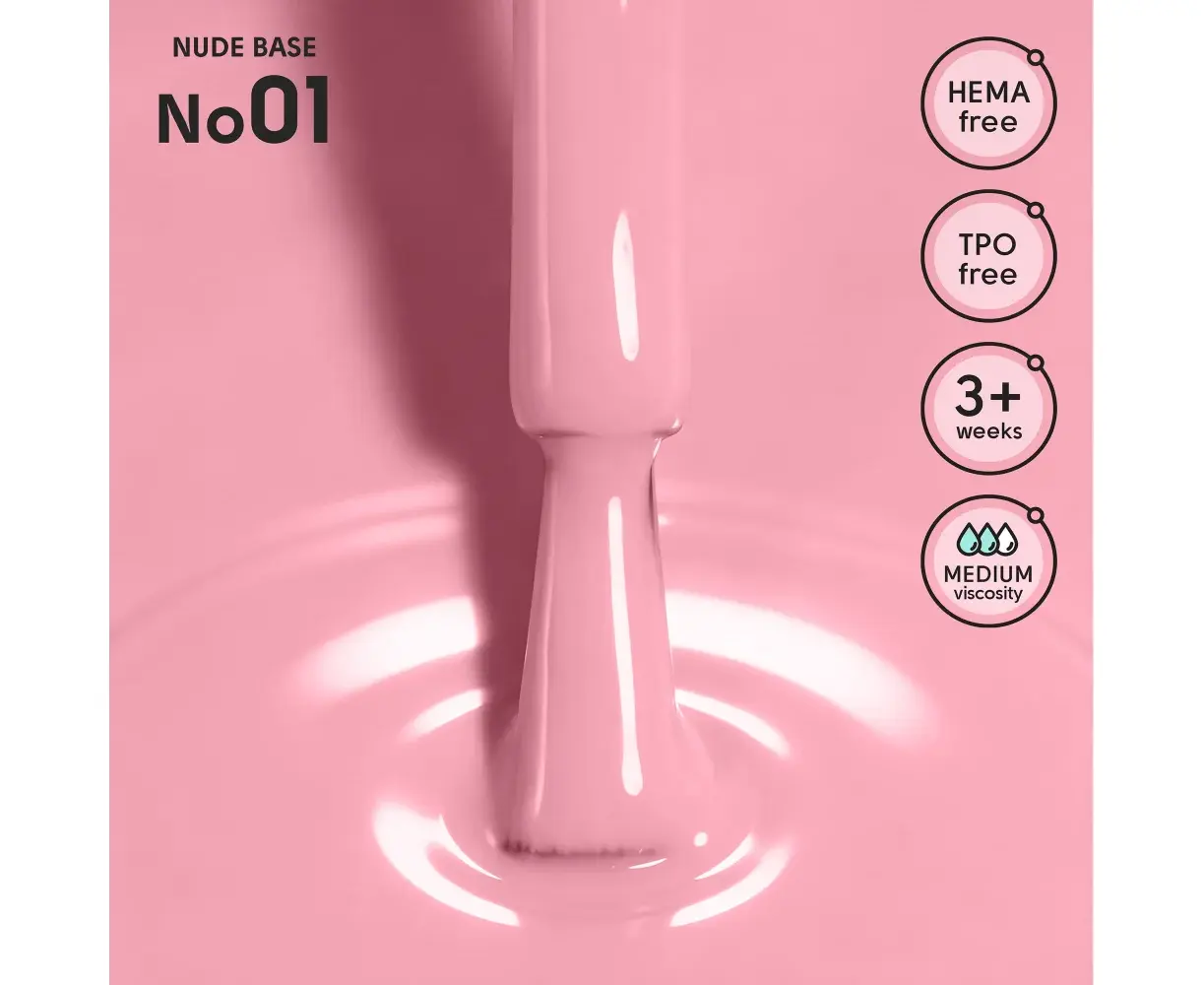 Камуфлююча база ніжних нюдових відтінків забезпечує надійне покриття та підходить для вирівнювання нігтьової пластини. Має середню консистенцію, легко самовирівнюється, створюючи акуратну та гладку поверхню. Ідеально підходить для натурального манікюру та використання як самостійне покриття або як основа під подальше нанесення матеріалів. Забезпечує стійкість манікюру понад 3 тижні, зберігаючи форму та естетичний вигляд. Не містить HEMA та TPO.