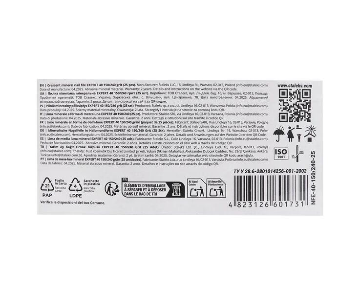 STALEKS. Набір 25 шт., Пилка "півмісяць" 150/240 грит, мінеральна EXPERT 40