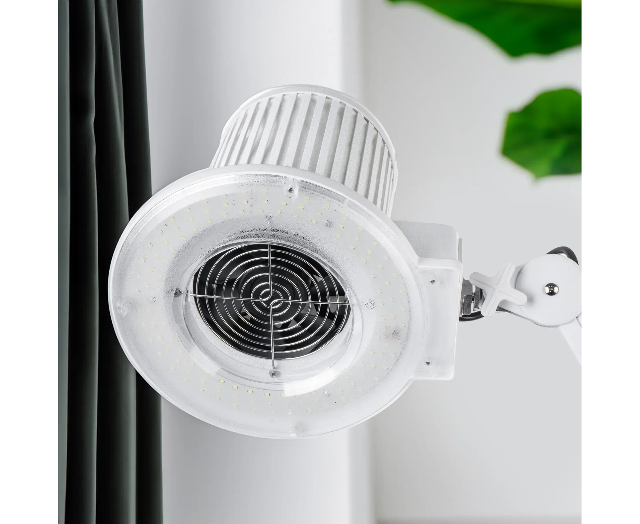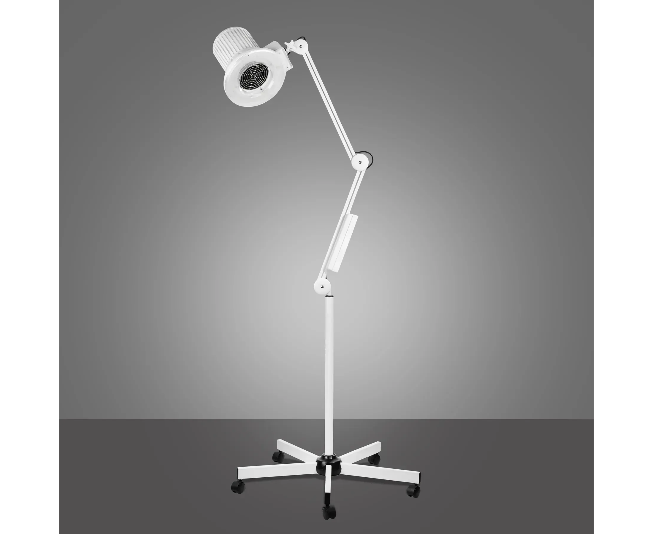 Гнучкі кронштейни дозволяють регулювати кут нахилу. Корпус обертається на 180° – можна встановити витяжку зверху або знизу робочої зони. Стійка з колесами легко переміщується до педикюрного крісла.