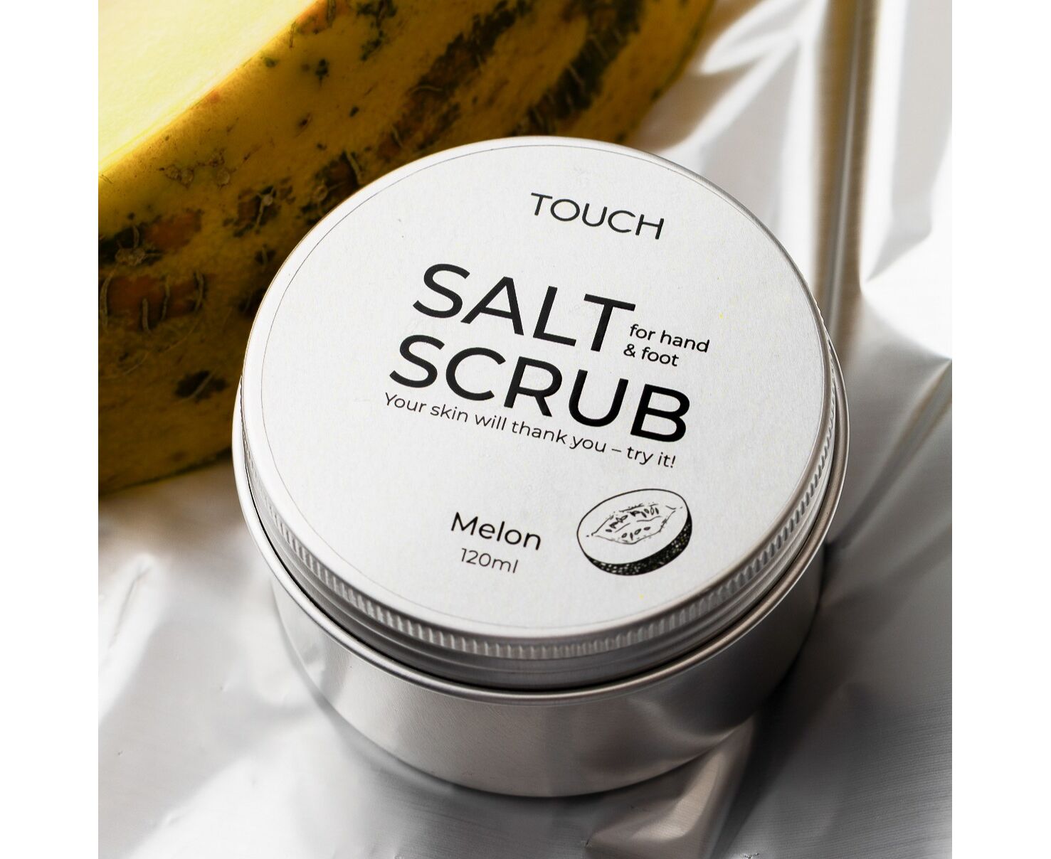TOUCH. Hand&Foot Salt Scrub, Melon, 120 ml. Скраб для рук та ніг з запахом дині