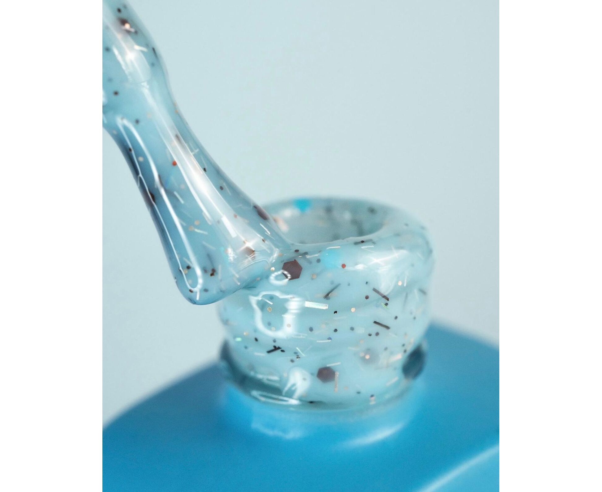 Колір: блакитний зі срібними та яскраво-блакитними частинками